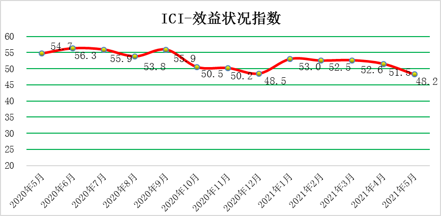 5月份ICI制造業(yè)指數(shù)為57.1%,環(huán)比回落3.8個百分點,持續(xù)高于榮枯線,制造業(yè)平穩(wěn)擴張。5月份,中國制造業(yè)采購經(jīng)理指數(shù)(PMI)為51.0%,低于上月0.1個百分點,仍高于臨界點,制造業(yè)繼續(xù)保持擴張態(tài)勢。