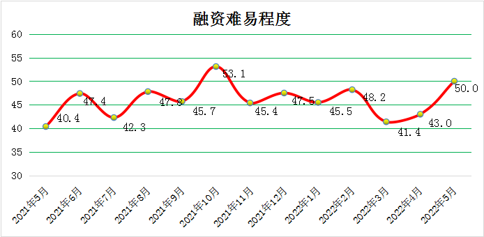 5月份,經(jīng)營環(huán)境指數(shù)為47.9%,環(huán)比回落0.6個百分點,連續(xù)回落,繼續(xù)位于榮枯線之下,經(jīng)營環(huán)境問題無明顯改善,應(yīng)收賬款問題尤為突出。具體來看,稅費(fèi)負(fù)擔(dān)指數(shù)為45.8%,環(huán)比回落0.7個百分點,持續(xù)位于榮枯線以下,稅費(fèi)政策還需深化;融資難易指數(shù)為50.0%,環(huán)比回升7.0個百分點,與榮枯線持平,說明當(dāng)前政府相關(guān)政策有效,仍需持續(xù)深化、加強(qiáng)鞏固;應(yīng)收賬款指數(shù)為34.9%,環(huán)比回落9.9個百分點,較大回落,繼續(xù)位于榮枯線之下,可能與企業(yè)出貨量大但實際并未收到貨款有關(guān)。市場秩序指數(shù)61.1%,環(huán)比回升1.4個百分點,持續(xù)高于榮枯線且處于高位,市場秩序持續(xù)改善。
