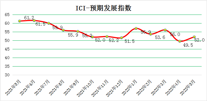 5月份ICI綜合指數(shù)及四個二級指標(biāo)除預(yù)期發(fā)展指數(shù)外均位于榮枯線之下,表明受國內(nèi)疫情復(fù)雜嚴(yán)峻及國外地緣政治沖突影響工業(yè)生產(chǎn)繼續(xù)承壓。但除經(jīng)營環(huán)境指數(shù)外其余指數(shù)均有所回升,較上月相比有所改善且預(yù)期向好,表明近期出臺的扎實穩(wěn)住經(jīng)濟(jì)的一攬子政策措施成效開始顯現(xiàn)。