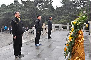 主題活動中,全體同志祭掃了盤山革命烈士陵園,向烈士紀念碑敬獻花籃,深切緬懷在冀東抗日戰爭中犧牲的革命烈士。莊嚴的烈士紀念碑前,全體同志寧靜肅立,集體向英烈默哀致敬。郝明金、強衛東和中材集團黨委書記于世良緩步登上紀念碑基座,神情莊重地整理花籃上的緞帶,并帶領全體同志瞻仰了紀念碑。青山有幸埋忠骨,先烈遺風育后人。通過祭掃活動,每位同志重溫了那段血與火的悲壯歷史,永遠銘記抗日先烈的豐功偉績,激勵大家繼承先烈遺志,堅定理想信念,牢記黨的宗旨,同心協力,開拓進取,以優異成績迎接黨的十八大勝利召開!