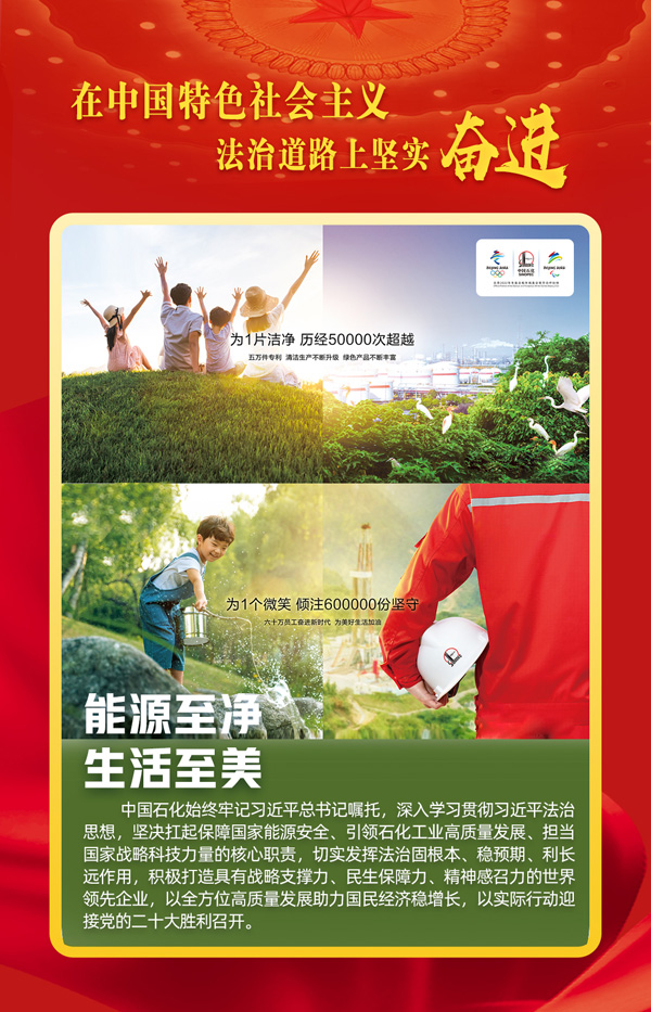 聚焦學(xué)習(xí)宣傳闡釋習(xí)近平法治思想,凝聚推動(dòng)全面依法治國(guó)的奮進(jìn)力量,展示中央企業(yè)高質(zhì)量發(fā)展的良好形象,為黨的二十大勝利召開(kāi)營(yíng)造濃厚氛圍。2022年全國(guó)兩會(huì)期間,由人民政協(xié)報(bào)、人民政協(xié)網(wǎng)聯(lián)合國(guó)務(wù)院國(guó)資委新聞中心共同策劃的“中央企業(yè)法治建設(shè)海報(bào)展”,在兩會(huì)駐地的“人民政協(xié)報(bào)政協(xié)屏”開(kāi)始集中展播。