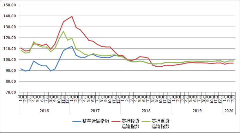 2020年3月份,由中國物流與采購聯合會和林安物流集團聯合調查的中國公路物流運價指數為98.4點,比上月回升0.25%,比去年同期增長1.5%。月內各周指數整體延續回升趨勢,其中第一、三、四周環比回升,第二周環比回落。