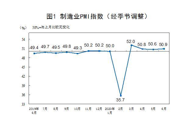 國家統計局數據顯示,6月份,中國制造業采購經理指數(PMI)為50.9%,比上月上升0.3個百分點,連續4個月高于50%的榮枯線。