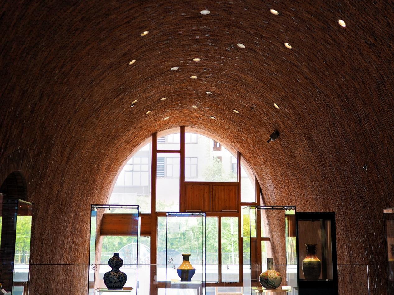 窯磚,是恢復(fù)陶陽里歷史文化街區(qū)古城舊貌的基礎(chǔ)載體。在這里,中建一局充分運(yùn)用磚的藝術(shù)造就了景德鎮(zhèn)御窯博物館“每一平方厘米都不相同”的建筑美學(xué)。御窯博物館的設(shè)計靈感來源于傳統(tǒng)蛋形窯,由8個多曲面拱體結(jié)構(gòu)造型組成,不同于簡單的幾何形,博物館選用復(fù)雜的雙曲面,這也是全球首個采用復(fù)雜雙曲面結(jié)構(gòu)的建筑,需要利用磚的收分錯位,借助重力完成建造。