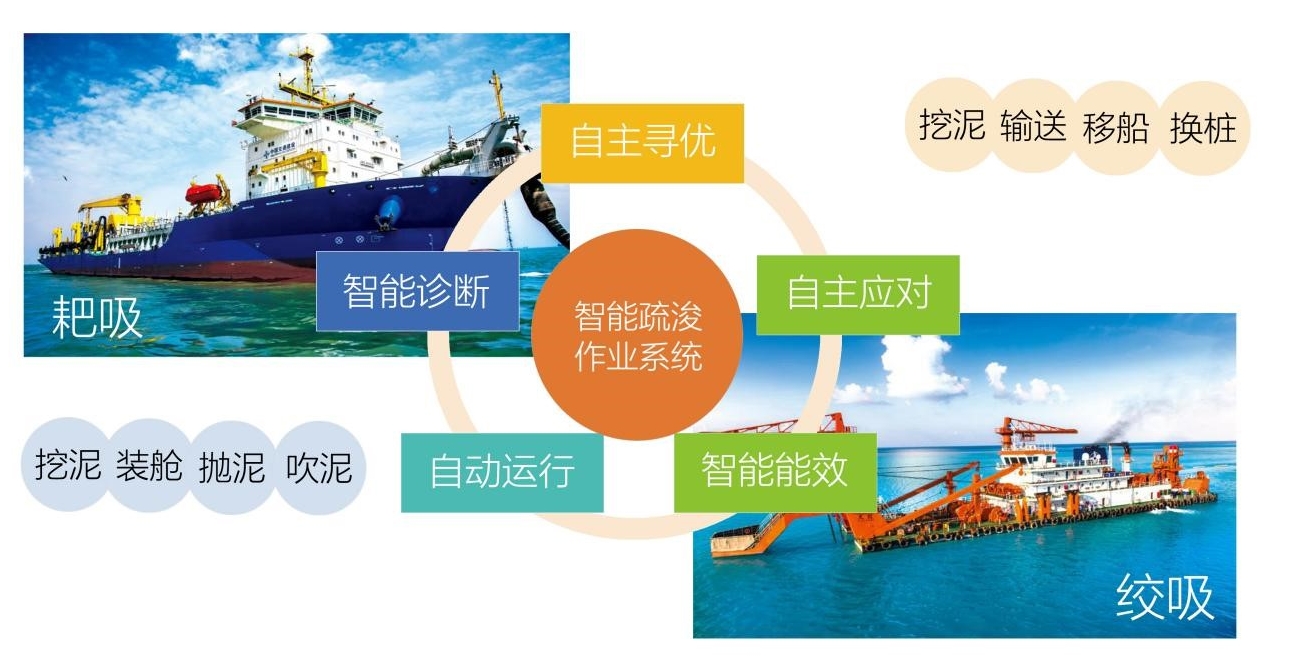 中交集團堅持“智能”理念,自主研發智能疏浚作業系統、智能化能效管理系統和三維可視化監控系統等智能管理系統,推動人工智能、信息化技術與疏浚船舶制造深度融合。自主研制挖泥船控制軟件支撐平臺,突破復雜系統基礎控制軟件關鍵技術國外封鎖,掌握基于國產操作系統及CPU下控制軟件基礎平臺研發、挖泥船綜合控制等關鍵技術以及基于國產生態的智能集成控制系統研發設計,為實現智能疏浚奠定軟件基礎。采用人工智能和疏浚機理相結合的方法,加強超大型耙吸挖泥船上智能化控制系統總體分析、自動作業與安全控制系統研制、自主尋優智能系統研制、智能診斷系統研制、能效智能管理系統研制,通過AI技術應用實現“一鍵疏?!焙湍苄е悄軆灮湫凸r下可進行“無人疏浚”,提升疏浚安全和效能。