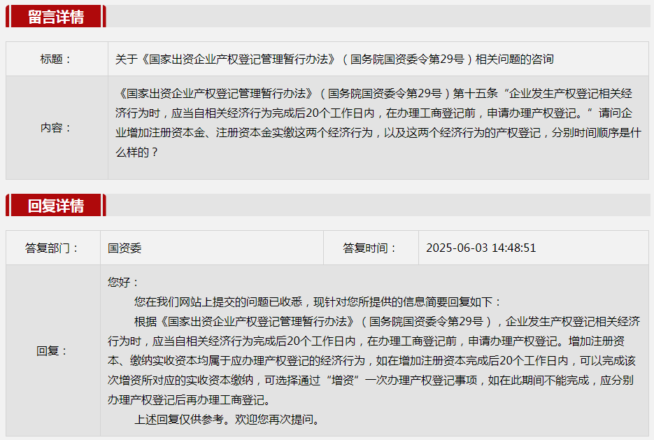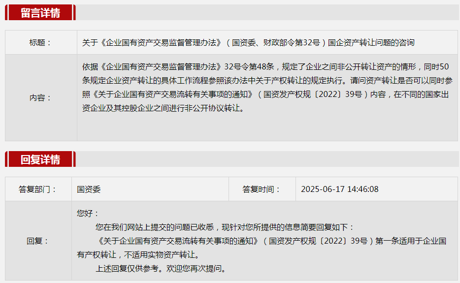2025年6月國務院國資委網站政務咨詢欄目部分網友提出的咨詢,我們初步做出了認真的回應,現選擇五條關注度高、點擊量高的問題,再次推薦分享。