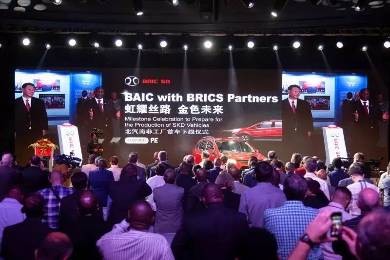 南非當(dāng)?shù)貢r間2018年7月24日,中國國家主席習(xí)近平和南非總統(tǒng)拉馬福薩以視頻連線方式共同見證了北汽南非工廠首款整車下線,隨著兩位領(lǐng)導(dǎo)人共同按下生產(chǎn)線啟動按鈕,第一輛在南非本地組裝生產(chǎn)的北汽汽車成功下線!