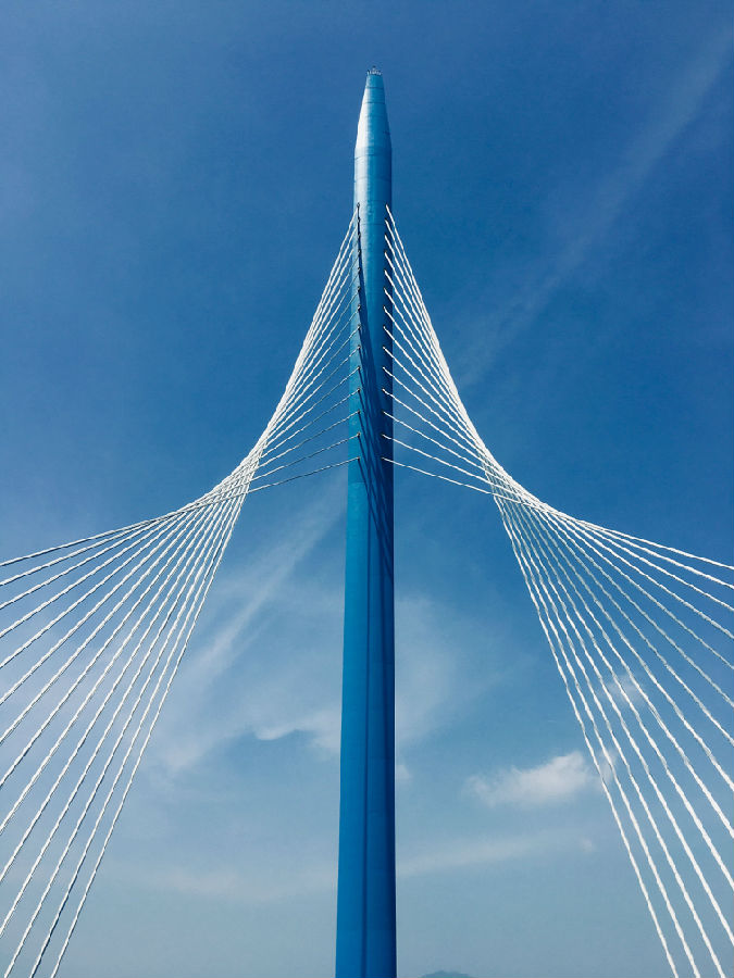 沙洲島特大橋位于福建漳州龍海,是廈漳同城大道項目關(guān)鍵性控制工程。大橋全長3.12公里,由北溪主橋、西溪主橋和西溪引橋組成,是一座跨九龍江、沙洲島的特大型橋梁。其中,西溪主橋設(shè)計為“斜塔+超寬混合梁+扭背索”結(jié)構(gòu),在福建省尚屬首例。西溪大橋塔高117米,橋?qū)?1米,是目前全球最寬的單塔斜拉橋。