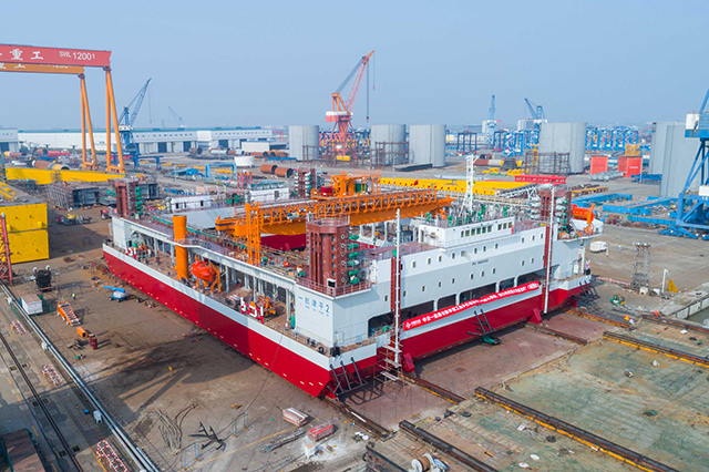 4月9日,由中交一航局研發、上海振華重工建造的自升式碎石鋪設整平船“一航津平2”在南通下水,投產后將進一步鞏固我國在海底隧道基礎施工領域的世界領先地位。這艘世界最大、最先進的自升式碎石鋪設整平船,將于7月投入粵港澳大灣區深中通道建設。