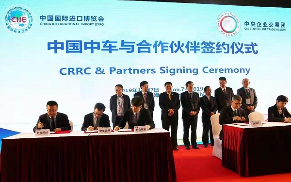 11月7日,中國中車在第二屆進博會現場舉行集中簽約儀式,與ABB、英飛凌、BVV等26家合作伙伴簽署了36份采購協議。
