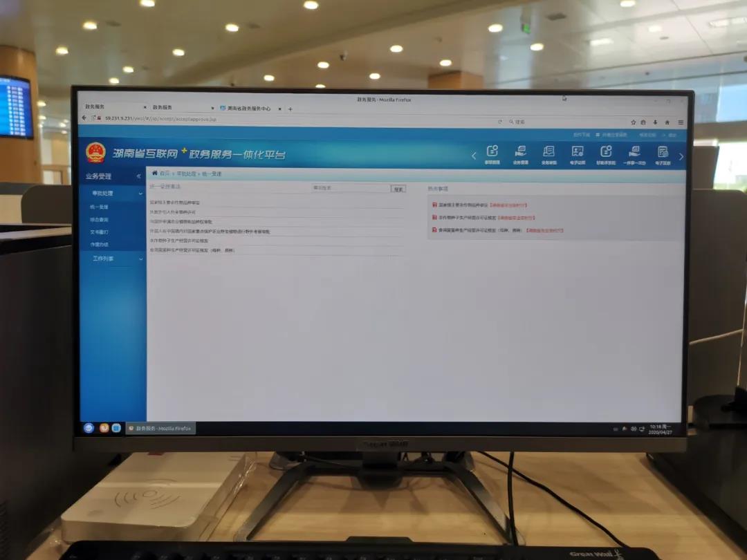 湖南省政務服務大廳是全國第一個在電子政務外網實現辦公電腦、操作系統、辦公軟件、自主服務終端、軟件平臺、電腦配套外設等全部國產化的政務大廳。辦公電腦全部采用基于飛騰CPU和麒麟操作系統的新四核長城電腦,處理器CPU采用更先進的架構設計和微結構,具備更高主頻、更低功耗、更安全可信等特點,支持PSPA標準和SM2、SM3、SM4國密算法,實現可信計算,有效護航信息安全。試運行首日,32個省直部門,1442項辦理事項在中國長城科技新四核電腦上實現全部流程順暢運行,基于國產信息技術體系的統一云平臺成功上線,高拍儀、讀卡器、瀏覽器、第三方插件等外設終端與長城新四核電腦完美兼容。