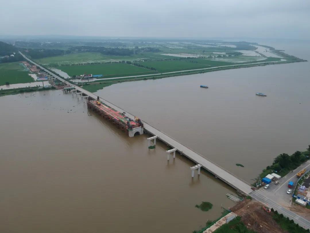 近日,中交集團所屬中交三公局樅陽縣烏金渡橋新建工程項目橋位施工現場湖水水位暴漲,西岸水位距河堤最低處僅20厘米。項目部立即啟動應急響應,積極與當地防汛部門聯動,調派機械、人員對橋位附近低洼居民聚集區域周邊進行填土筑壩,做好沙袋防護,防止水勢蔓延,保護周邊居民人身財產安全。