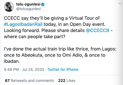 開放日當天,尼日利亞總統數字新媒體特別助理tolu ogunlesi在推特上與大家互動:“今天尼日利亞拉伊鐵路跟大家云開放,希望更多的人來參與。我曾經坐過三次中土線路上的火車,體驗真是太棒了”。