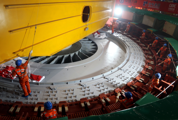 9月9日16時(shí)33分,由哈爾濱電氣集團(tuán)有限公司(簡(jiǎn)稱“哈電集團(tuán)”)研制的白鶴灘右岸電站首臺(tái)百萬(wàn)千瓦水輪發(fā)電機(jī)組轉(zhuǎn)子順利吊入機(jī)坑。至此,世界單機(jī)容量最大的白鶴灘水電站右岸首臺(tái)(14號(hào)機(jī))轉(zhuǎn)子實(shí)現(xiàn)成功吊裝,標(biāo)志著白鶴灘電站工程建設(shè)進(jìn)入全面總裝階段。