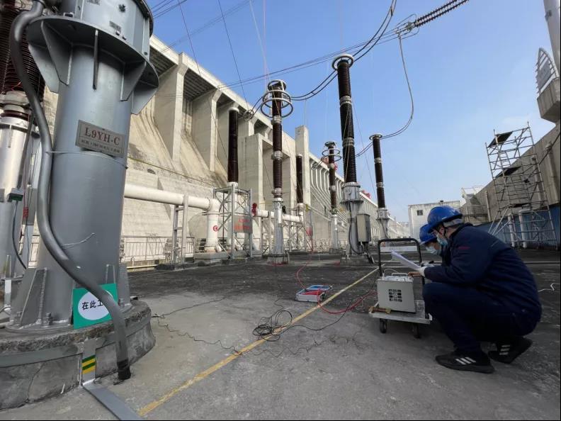 三峽電廠員工在右岸廠房頂進行出線高壓試驗