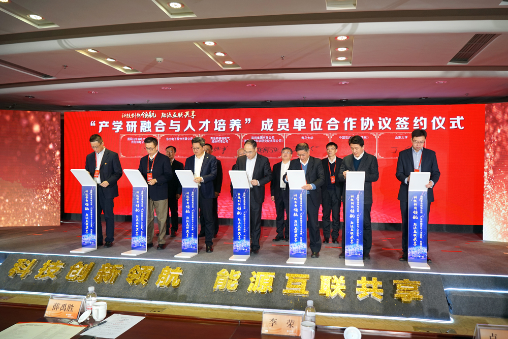 論壇上,來自市政府、省電力公司、高校、科研院所和企業的相關領導圍繞“產學研融合與人才培養”開展座談研討,并為“產學研融合與人才培養”平臺西海岸新區和膠州上合示范區領航基地揭牌;國網青島供電公司、山東大學、中國石油大學(華東)、青島大學、南瑞集團股份有限公司等14家單位進行了合作協議簽約儀式。