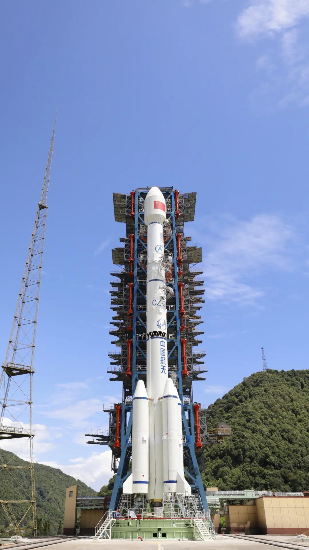 執行此次發射任務的長三乙火箭屬于“金牌火箭”長三甲系列,由航天科技集團一院研制,采用長三甲系列火箭統一構型設計思路,使用了4.2米直徑整流罩。該狀態火箭全長56.542米,全箭起飛質量約456噸。