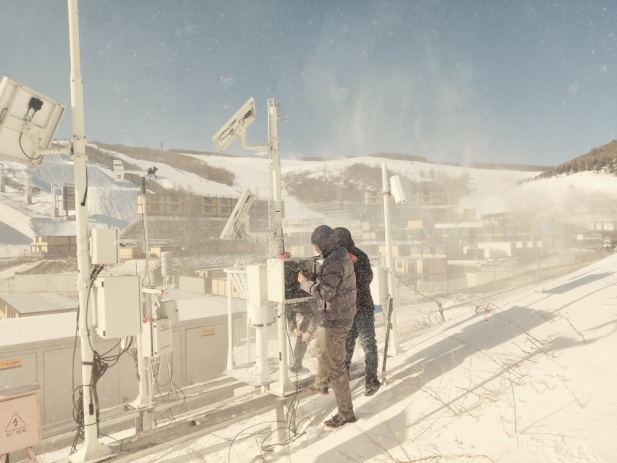 相較于遠距離“指點風云”的隊友們,2021年是中國航天科工二院23所自動氣象站保障隊員在冬奧賽區沖刺的一年。為保證風傳感器在人工造雪期間的正常運行,保障隊員對數十套風傳感器進行了改造,增加加熱融冰裝置,解決降雪期間機械風傳感器凝凍現象。