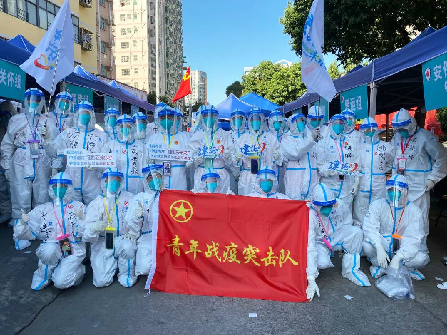 中建一局北京公司在深圳的五個項目召集青年突擊隊25人,奔赴核酸檢測點進行志愿服務,在福田、羅湖等區域調運多功能集裝箱突擊完善隔離酒店。中建四局“精誠”志愿者火速馳援深圳市南山區封控區、防范區,約350余名志愿者、40余個小分隊第一時間向社區報到,下沉一線、深入社區。中建安裝南方公司組建20余人青年志愿者隊伍,奔赴社區,排查了1362家住戶,服務近8000余人進行核酸檢測。
