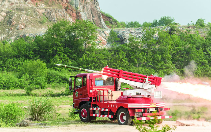 火箭式遠距離森林滅火系統采用自動操瞄、火箭彈道修正、火箭彈爆破撒布等一系列關鍵核心技術,可單次齊射24發滅火彈,射程1至3公里,單次齊射滅火面積達2000平方米,通過遠距離對火勢壓制、隔離,有效解決一般滅火設備人員抵達火場困難、近距離滅火危險性高、滅火原料補給困難、使用維護成本高等行業痛點,被譽為遠距森林滅火“殺手锏”裝備。