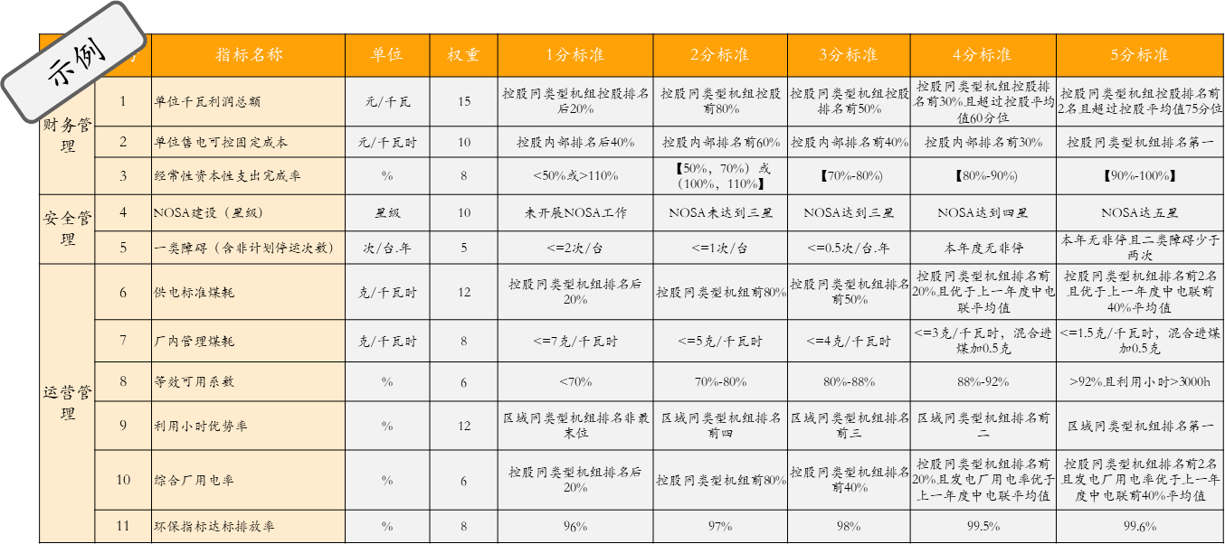 華潤電力卓越運營評價指標(biāo)及賦值示例