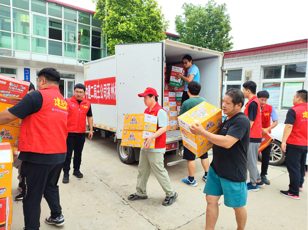 在河北涿州,中建二局“砼心筑夢”志愿服務隊為涿州范陽醫院送去救生衣、礦泉水、面包、牛奶、八寶粥等救援物資。中建二局涿州松林店項目主動對接涿州市總工會,積極籌備救災物資,項目黨員、青年員工奔赴大馬村和東莊頭村配送礦泉水、方便面等生活物資。