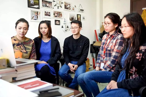 中國電科新聞中心工作人員觀看習主席演講直播。