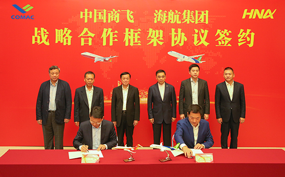 2018年6月2日,中國商飛公司與海航集團簽署戰略合作框架協議,雙方將在飛機采購和運行、航空市場開拓、航空維修與客戶服務等領域全面合作,共同推進國產民機市場化、規模化經營。