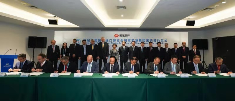 11月7日上午,國家能源集團在首屆中國國際進口博覽會上與來自全球的21家供應商現(xiàn)場簽訂框架協(xié)議及進口設備采購合同,集中采購貨物涵蓋產自德國、英國、法國等10個國家的采煤機、掘錨機、輪胎、發(fā)動機、壓縮機等技術先進、質量可靠的產品和服務。