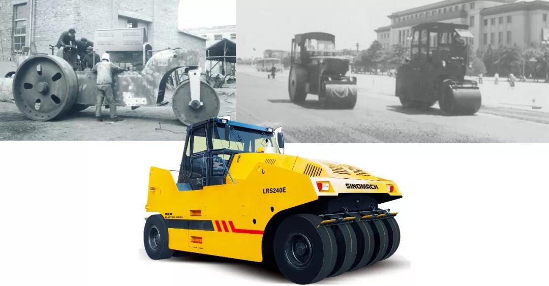 左上:1955年,洛陽公司研制出我國第一臺三輪壓路機