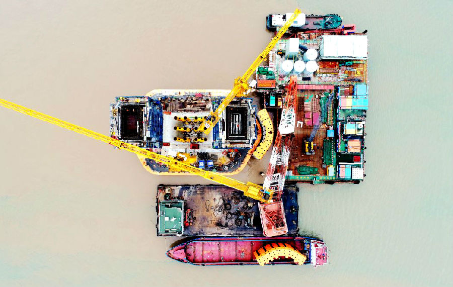 近日,在舟岱跨海大橋主通航孔橋ZT3#主墩施工平臺(tái)現(xiàn)場(chǎng),國(guó)內(nèi)首個(gè)內(nèi)外雙層防撞鋼套箱外層首塊鋼套箱安裝完成,拉開了該橋梁外層防撞鋼套箱安裝工作序幕。