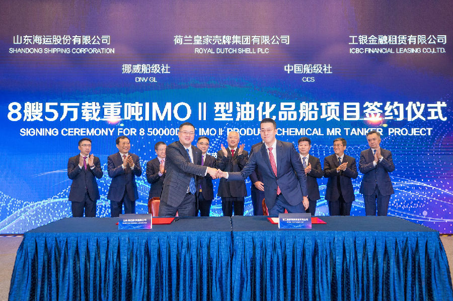 近日,山東海洋集團所屬山東海運與世界500強企業、全球最大的汽車燃油和潤滑油零售商、全球最大的化工產品經營者之一荷蘭皇家殼牌集團在濟南簽署8艘5萬載重噸IMOⅡ型油化品船期租租約。