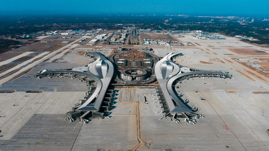 3月30日,天府國際機(jī)場航站區(qū)工程通過竣工驗(yàn)收。該工程自2017年11月破土動工,共歷時3年5個月,建成T1航站樓、T2航站樓、綜合換乘中心(GTC)、PRT智能小車系統(tǒng)等項(xiàng)目,刷新了我國同類大型機(jī)場航站區(qū)建設(shè)工期最短紀(jì)錄。航站樓采用全國首創(chuàng)的“手拉手”構(gòu)型,本期建成面積共71萬平方米,近機(jī)位97個,在國內(nèi)同體量機(jī)場中位居前列,旅客通過安檢后最多步行約650米即可登機(jī),與同等規(guī)模機(jī)場相比距離最短。GTC面積9.8萬平方米,可實(shí)現(xiàn)與地鐵、高鐵、出租車、私家車等多種交通方式無縫銜接,同時建有亞洲首個、全球第二個PRT智能小車系統(tǒng)與遠(yuǎn)端停車場接駁。
