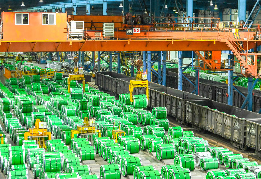 柳鋼集團冷軋廠生產(chǎn)的冷軋卷板成品整裝待發(fā)