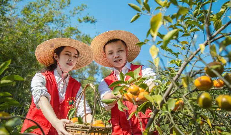 廣西農(nóng)信社金融服務先鋒在浦北縣龍門鎮(zhèn)日新村幫助農(nóng)戶采摘柑果