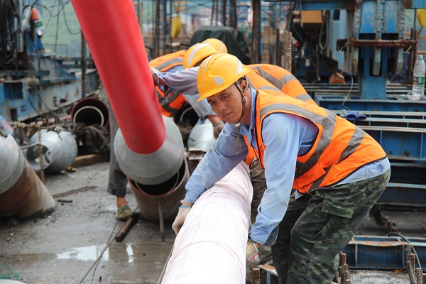 主橋懸臂澆筑施工是該橋施工控制中技術難度最大、安全風險最高的關鍵工序。在施工過程中,項目創新掛籃模板系統設計及施工方法,提高施工效率,大橋單個懸臂澆筑梁段施工周期比已建成同類橋梁快4.2天,主箱梁總施工工期縮短約5個月,建造速度行業領先。此外,在斜拉索安裝過程中,項目還通過BIM技術、優化安裝工藝工序,實現了全橋184個索導管和斜拉索完全對中,將安裝精度誤差控制在5毫米內。