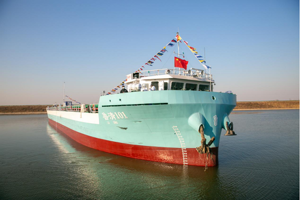 打造河海直達的綠色智能船舶。山東海運深度參與小清河復航工程,創新提出“內河自航+海上頂推”的運輸方式,設計建造了電動機推進的內河兼海駁多用途船、內河兼海駁集裝箱船和無需上岸、過駁的2200HP頂推船等首批小清河綠色智能系列船型,綠色智能內河運輸船舶推廣應用試點入選了加快建設交通強國山東示范區第一批試點任務名單。今年7月,內河兼海駁集裝箱船承載中歐班列自阿拉山口口岸入境的1080噸大麥,由小清河濟南港主城港區駛向淄博港高青港區,實現了小清河斷航26年后的首次載貨航行。小清河綠色智能船舶將在聯接省會、貫通魯中、河海聯運、服務山東省中部工業走廊的陸海新通道上發揮重大作用。