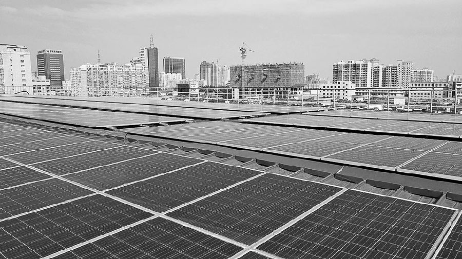 圖為山西焦煤第一個屋頂光伏發電項目——運城鹽化光伏發電項目成功并網發電