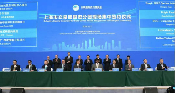 11月7日上午,首屆中國國際進口博覽會上海市交易團國資分團舉行集中簽約。此次進口博覽會上,45家上海市屬企業集團組建上海市交易團國資分團,采購商企業累計3500多家,采購人員超過3萬人,在智能高端裝備、醫療醫藥保健、汽車零部件、食品農產品、服務貿易等領域將達成100余項交易協議。