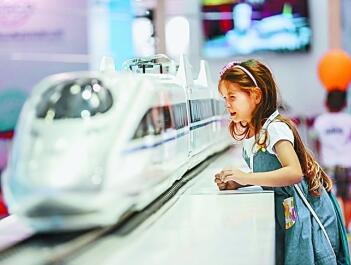 一個女孩在第82屆薩洛尼卡國際博覽會中國館參觀中國高鐵列車模型。新華社發(fā)