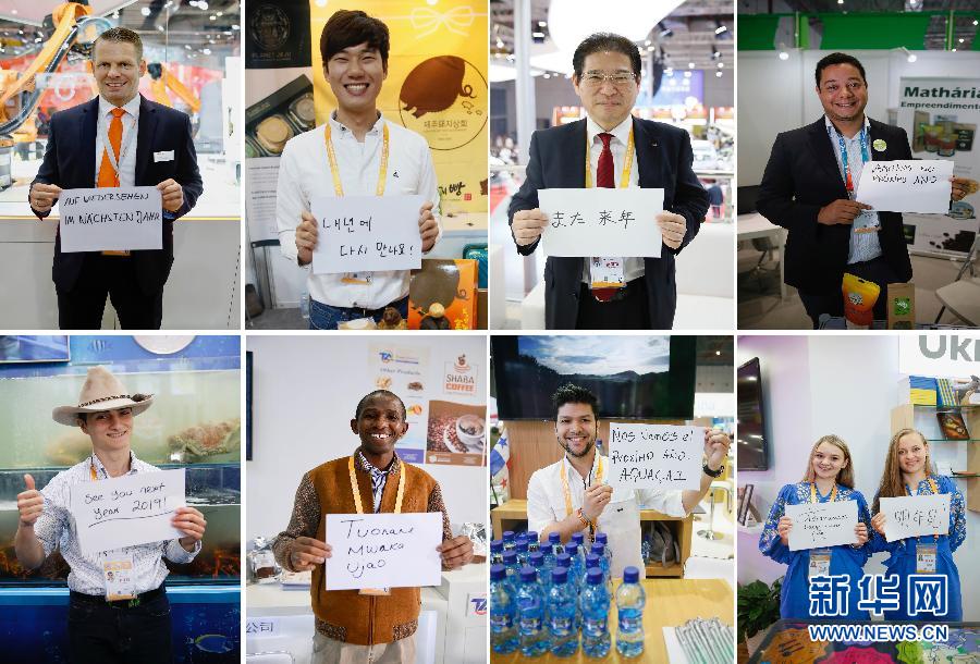 11月10日,進(jìn)博會上不同國家的參展人員展示用不同語言書寫的“明年見”(拼版照片)。 首屆中國國際進(jìn)口博覽會11月5日至10日在上海舉行。記者在采訪中了解到,很多參展商在進(jìn)博會上收獲了不少訂單,宣傳了自己的產(chǎn)品,結(jié)識了很多朋友。他們表示,希望明年再來進(jìn)博會。 (新華社記者 侯東濤 攝)