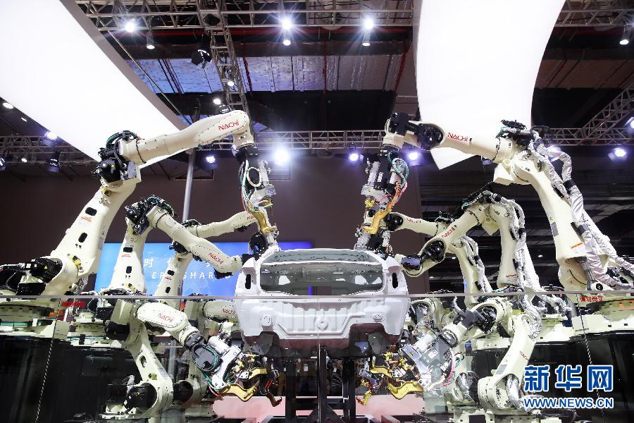 11月6日,日本那智不二越公司展出的點焊密集協(xié)作機器人在進(jìn)行作業(yè)演示。 11月5日至10日,首屆中國國際進(jìn)口博覽會在上海國家會展中心舉行。 (新華社記者 丁汀 攝)