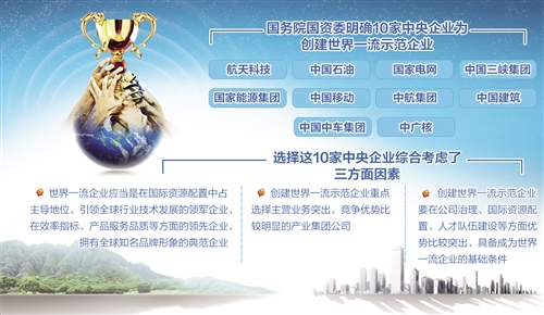 據介紹,國資委綜合考慮三個方面的因素,選擇航天科技等10家中央企業作為創建世界一流示范企業。