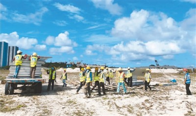 在馬爾代夫胡魯馬累,中國建筑集團有限公司為馬方建造用于安置外籍勞工的隔離觀察設施。