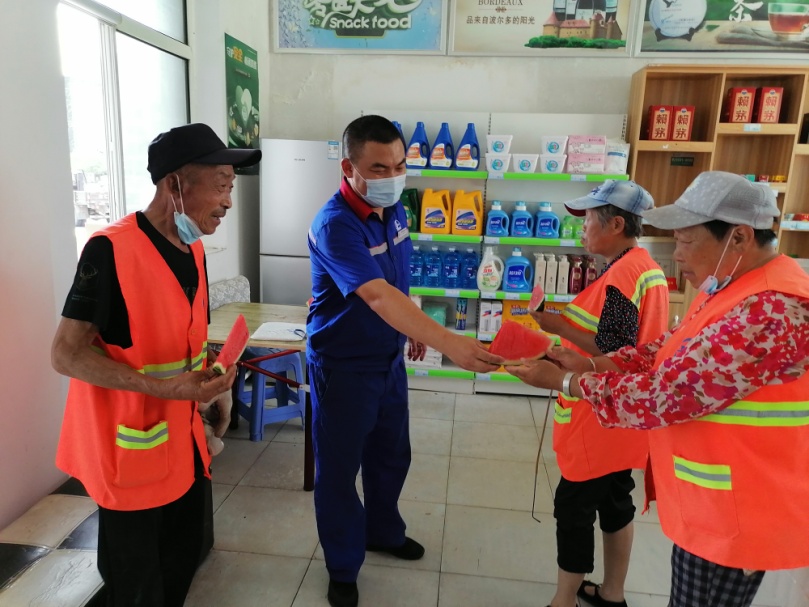 截至7月末,中國石化吉林石油65座愛心“環衛驛站”主動為環衛工人提供熱水、熱飯、臨時休息等基礎服務。高溫天氣,部分環衛驛站為環衛工人準備了冰鎮西瓜、酸梅湯、冰點等解暑利器,為環衛工人送去夏日的一份清涼,帶來心中的一份溫暖。