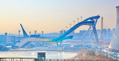 1月5日拍攝的北京冬奧會(huì)首鋼滑雪大跳臺(tái)。 劉憲國(guó)攝(人民視覺(jué))