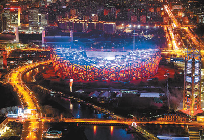北京國家體育場夜景。