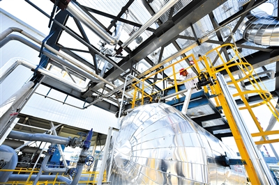 工作人員在陜西延長石油榆林煤化有限公司查看二氧化碳捕集裝置運行情況。
