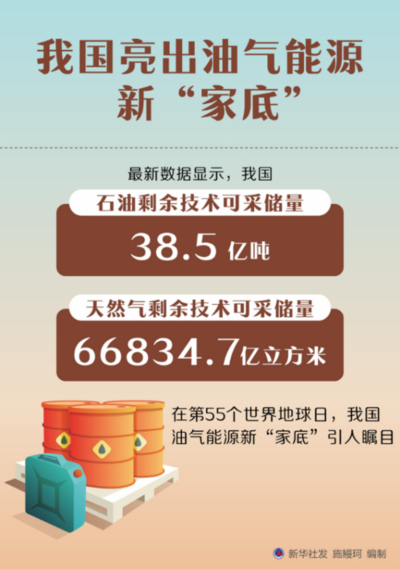 我國石油剩余技術可采儲量38.5億噸,天然氣剩余技術可采儲量66834.7億立方米。在第55個世界地球日,我國油氣能源新“家底”引人矚目。