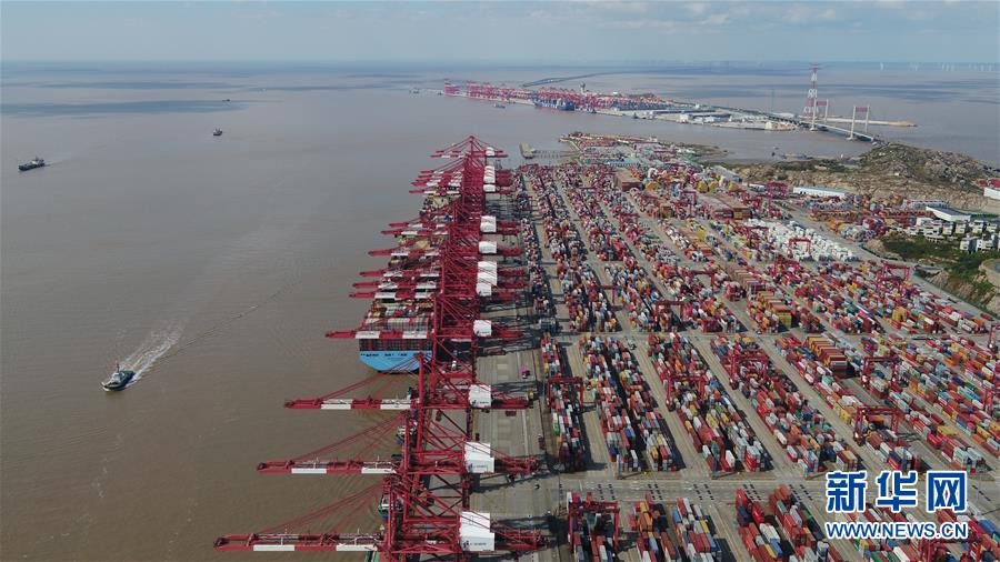 這是無人機拍攝的上海洋山港集裝箱碼頭(11月1日攝)。(新華社記者 丁汀 攝)
